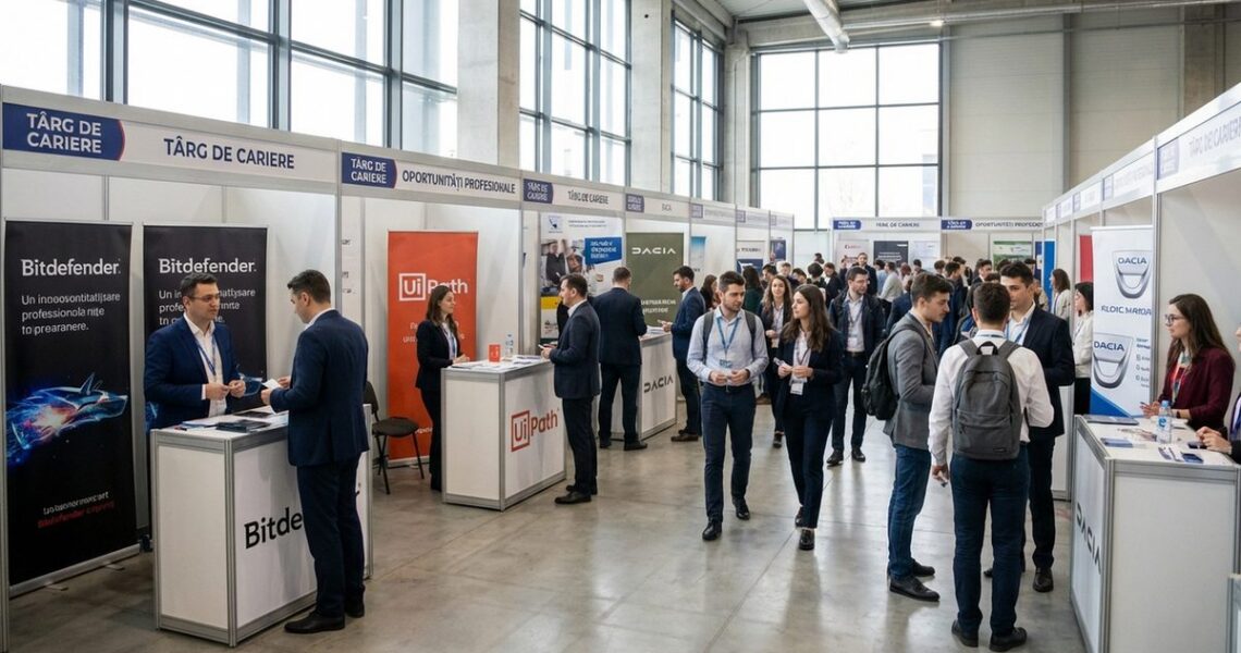 Vei găsi standuri organizate pe domenii. Poți circula liber, adresa întrebări și depune CV-ul. Unii angajatori organizează interviuri scurte chiar la stand.